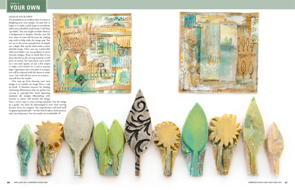 from Somerset Studio’s May 2012 issue from their magazine preview page; would be so cool to make your own rubber stamps in your journals