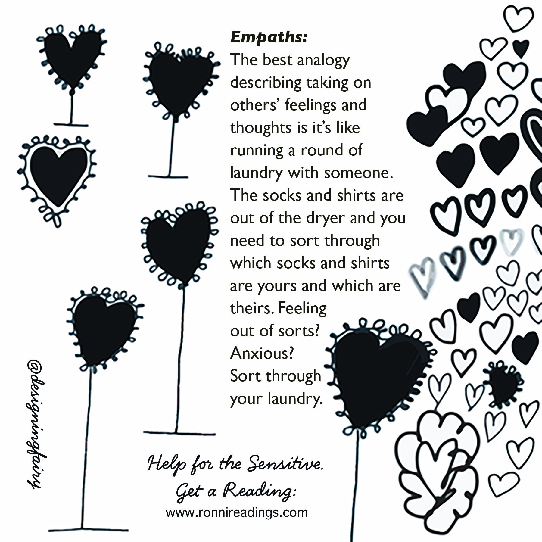 - And be aware of a reader that only reads your Fear. It’s very possible to read you and your emotions, if it’s very strong emotions. Those strong emotions can block out other guidance and create a false reading that has you running around in circles crazy! When I was in crisis, I had a reader tell me someone in my family was going to get pregnant very soon. Dear goodness! Well it wasn’t me, my boat had sailed, if you know what I mean. But my beautiful step-daughter was big time in love with her boyfriend and I was terrified it was her, and it probably dominated my thoughts in that moment.